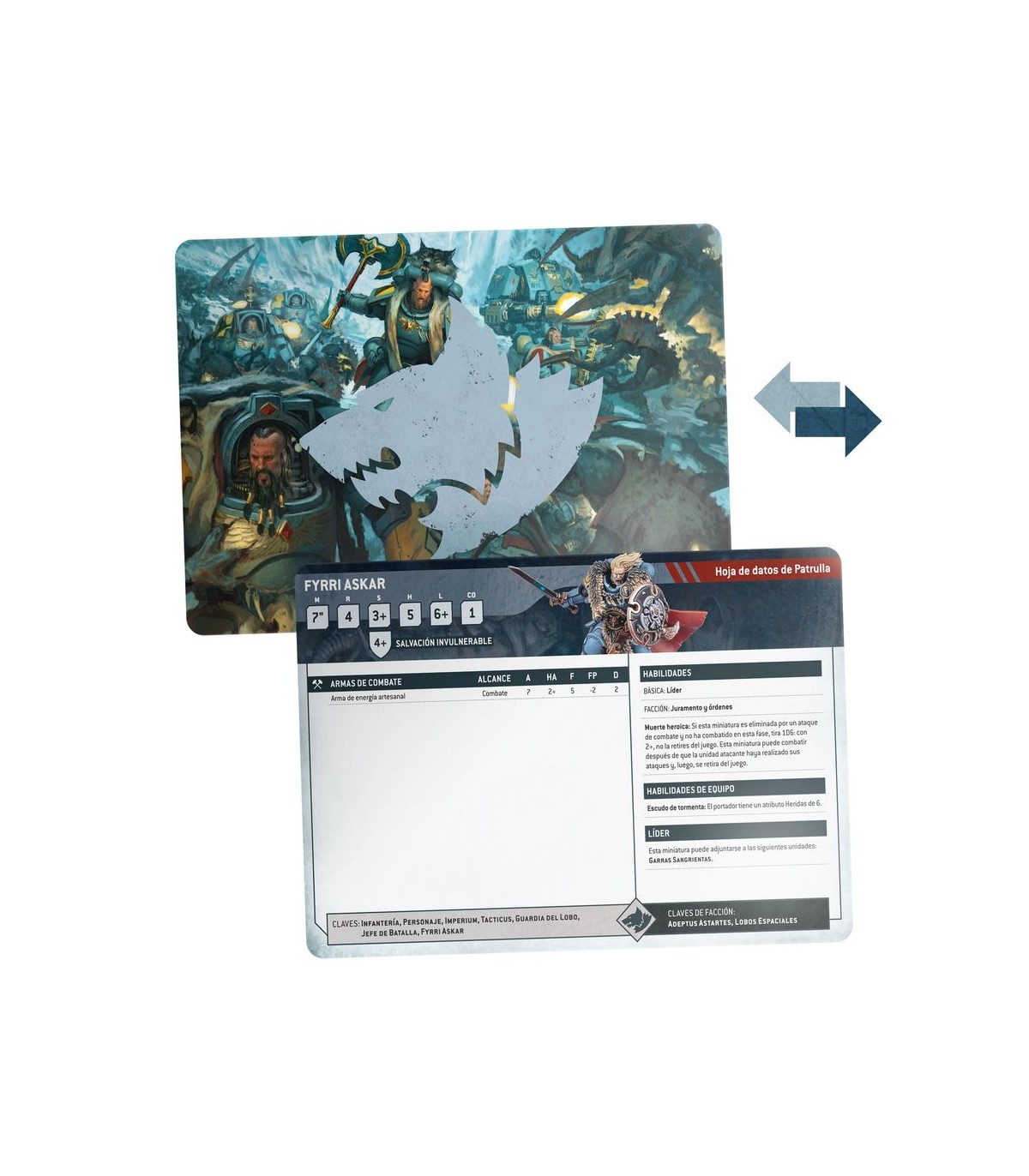 Aquesta caixa també inclou en primícia el nou Suplement de Codex: Space Wolves, un llibre de tapa dura de 104 pàgines amb una portada especial, ple de rerefons impressionant, regles actualitzades i atractives il·lustracions. A més del suplement i les miniatures, trobareu un conjunt de targetes de dades i un full de calcomanies per a la caixa d'exèrcit de Space Wolves.