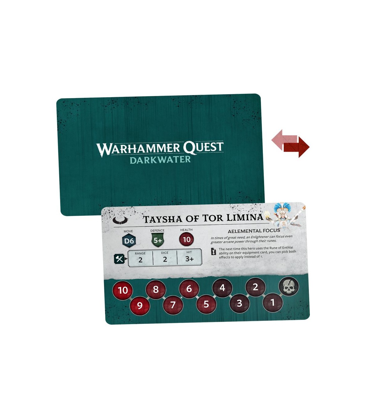 – A set of tokens and cards for Warhammer Quest: Darkwater, including 8x double-sided tokens, 4x Lumineth Realm-lords character cards, and 4x equipment/upgraded equipment cards