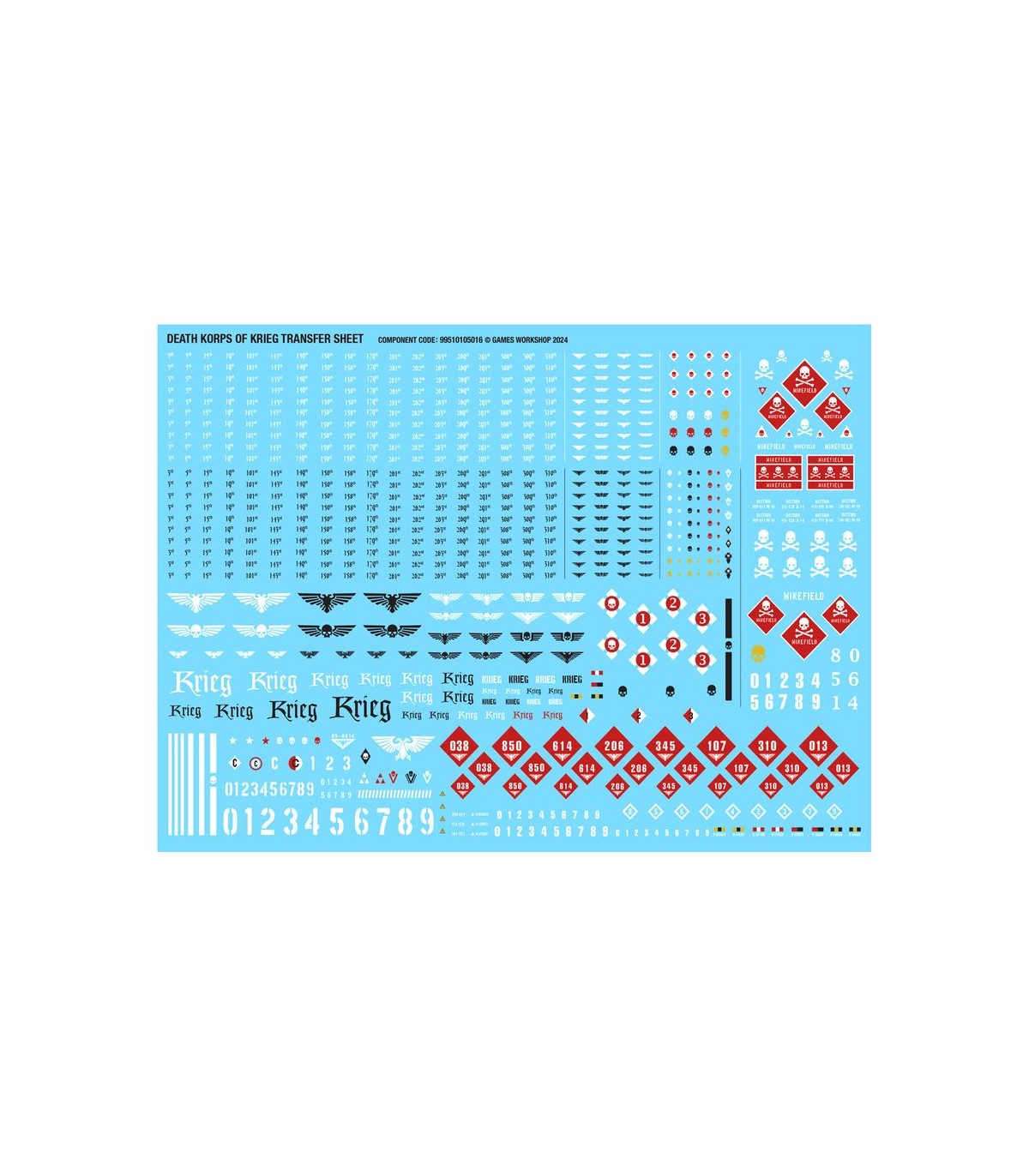 El kit está compuesto por 130 piezas de plástico y 10 peanas redondas Citadel de 25 mm. El set también incluye una hoja con 803 calcomanías de los Korps de la Muerte de Krieg para personalizar tus miniaturas.