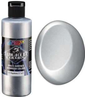 La couleur W357 Quicksilver doit être appliquée sur une base brillante blanche ou noire. Pour un meilleur effet chrome, appliquer sur une base blanche brillante, laisser sécher à l'air libre pendant 6 heures minimum avant d'appliquer un vernis brillant final. Pression d'air ~ 30 psi.