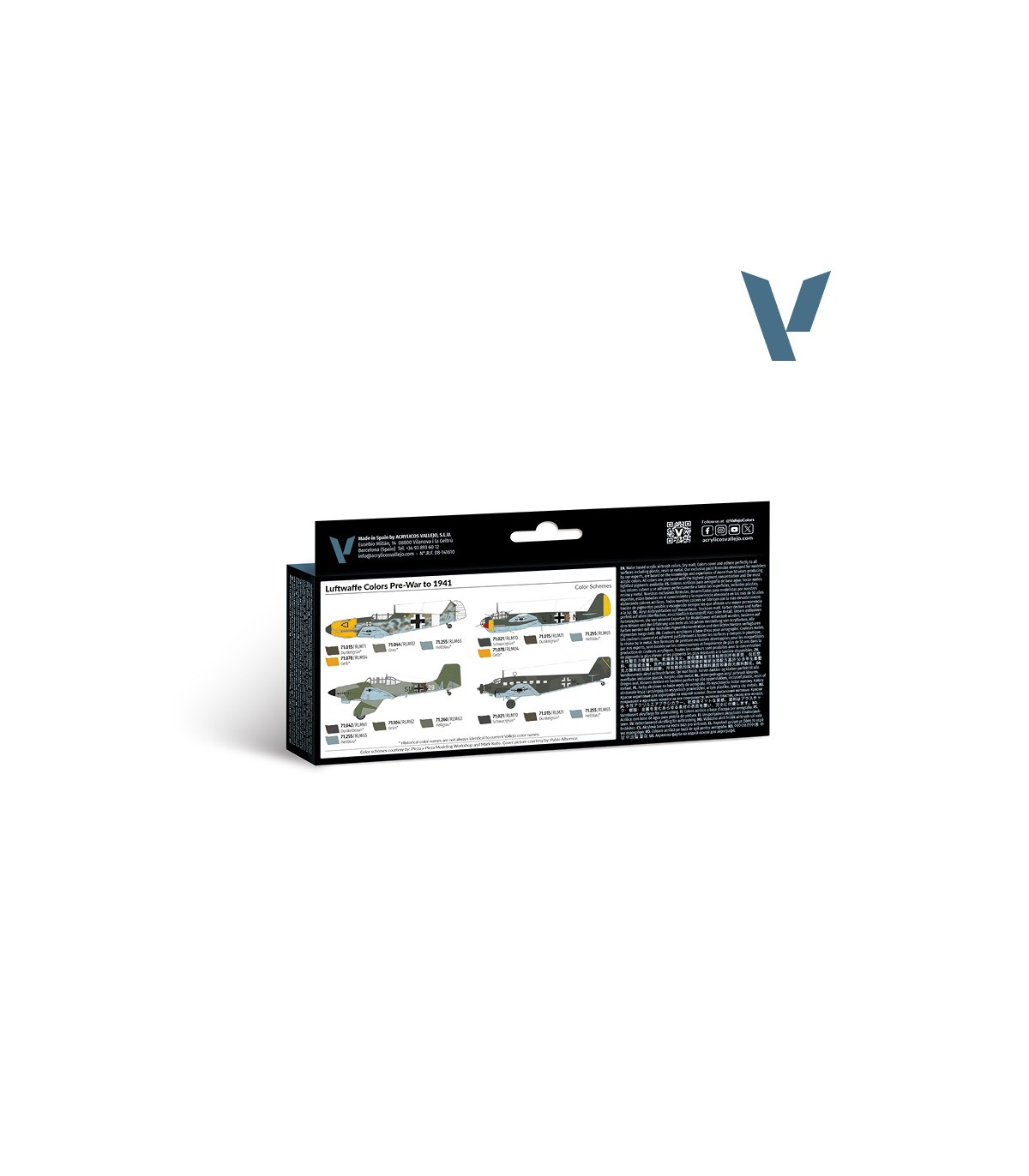 Ce set 8 couleurs Model Air est développé pour obtenir des schémas de camouflage de tout type d'avions Luftwaffe avant la Seconde Guerre mondiale et de la guerre civile espagnole, "Légion Condor" et aussi comme pour des campagnes ou premières étapes du conflit: la Pologne, Pays nordiques, Bataille de France, Bataille d'Angleterre, etc.