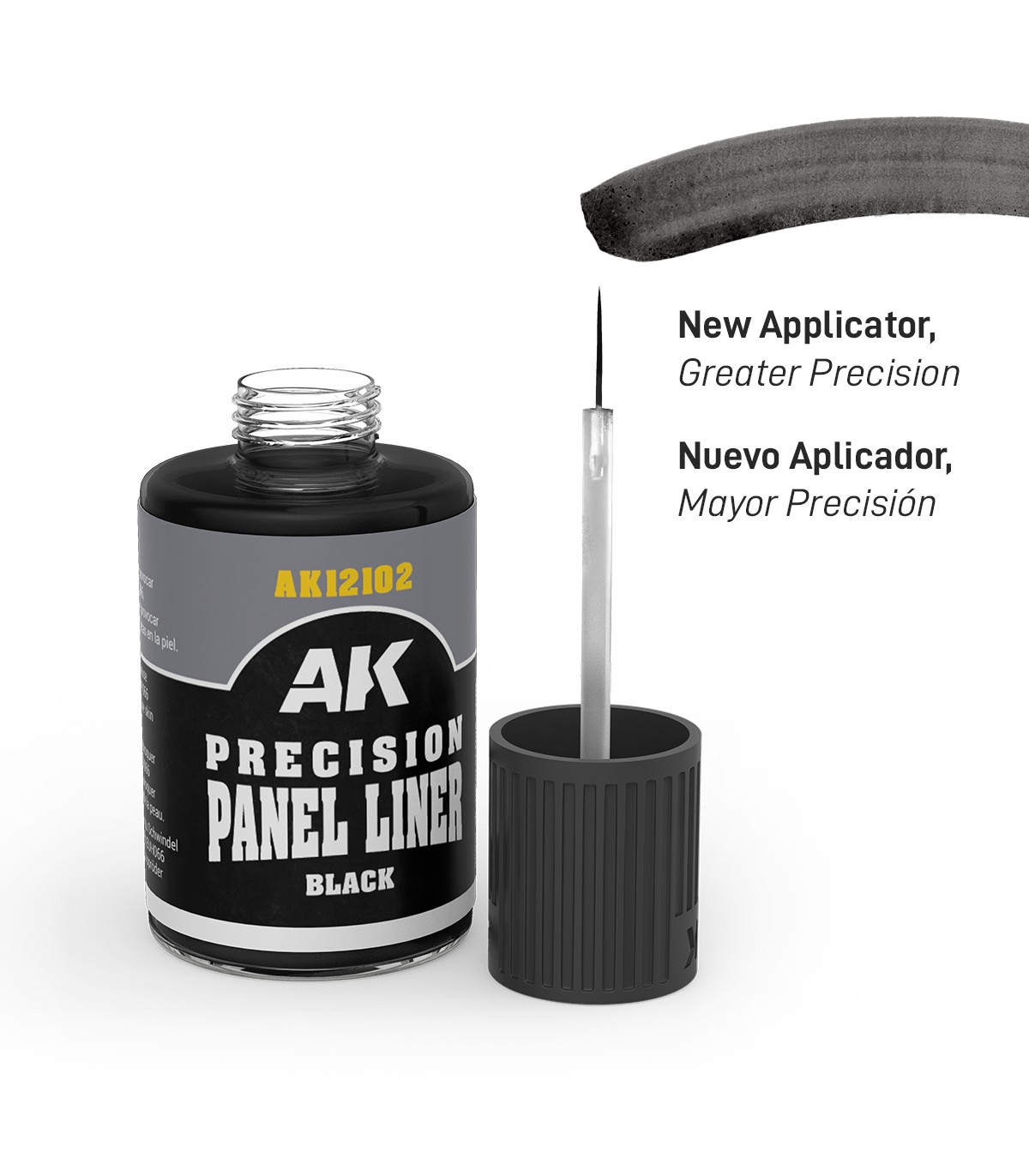 Precision panel liners are formulated with a blend of enamel-based products that allow the paint to flow efficiently by capillary action without spreading or staining large areas. The enamel base is ideal for panel lining as it prevents the surface tension typical of acrylic products, allowing the paint to flow easily through the details.