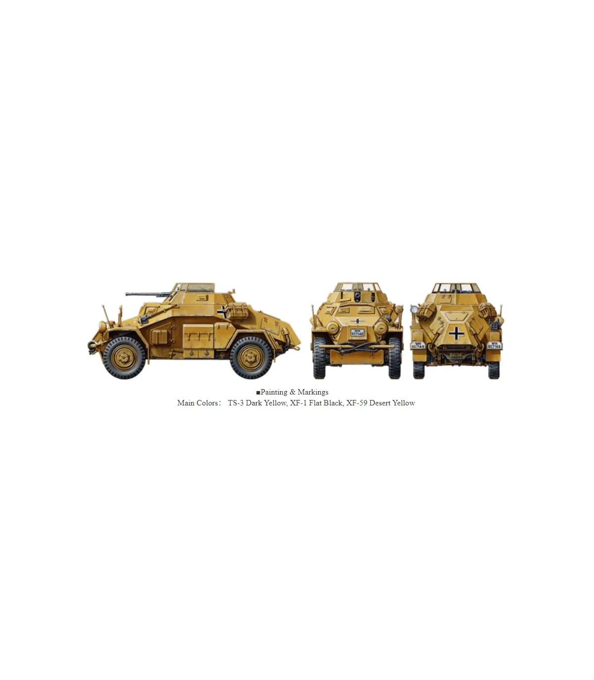 The Sd.Kfz.222 was a 4WD armored car used by the German army for reconnaissance duties. It was well-armed with a 20mm cannon and a machine gun in its open turret, which was protected from grenades and fragments by metal mesh covers. Powered by a 90hp liquid-cooled engine mounted in the rear, it was capable of a maximum road speed of 70km/h and maximum cross-country speed of 40km/h. The famous Field Marshal Erwin Rommel's Afrika Korps used these armored cars in the North African desert for scouting and offensive operations, together with the DKW NZ350.