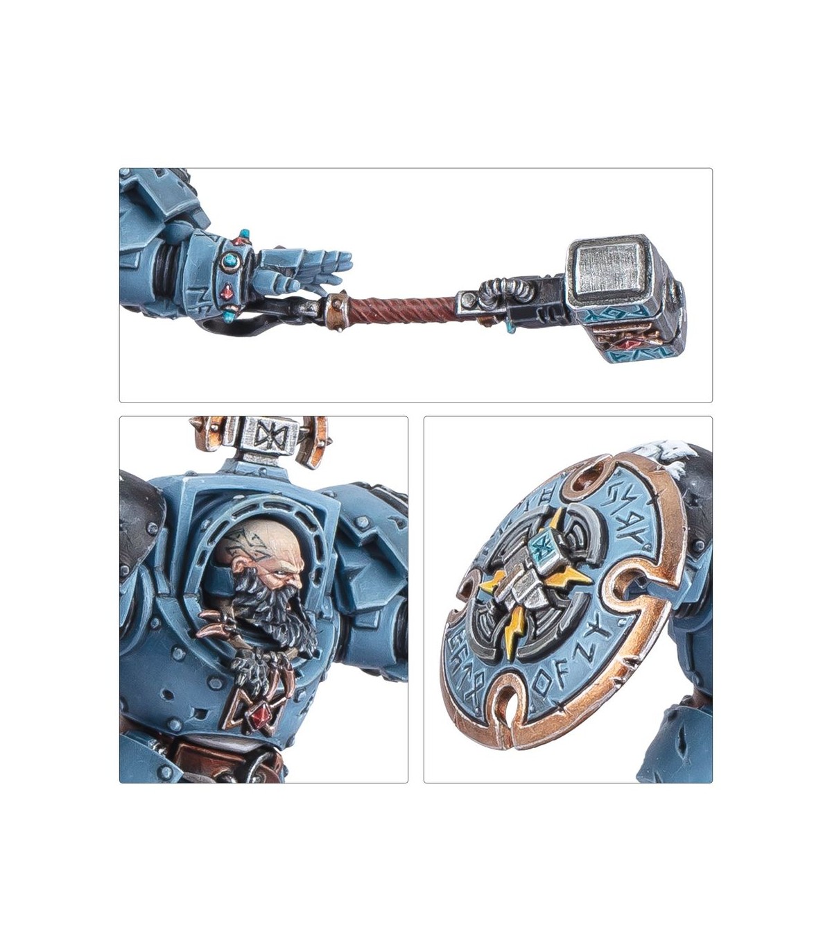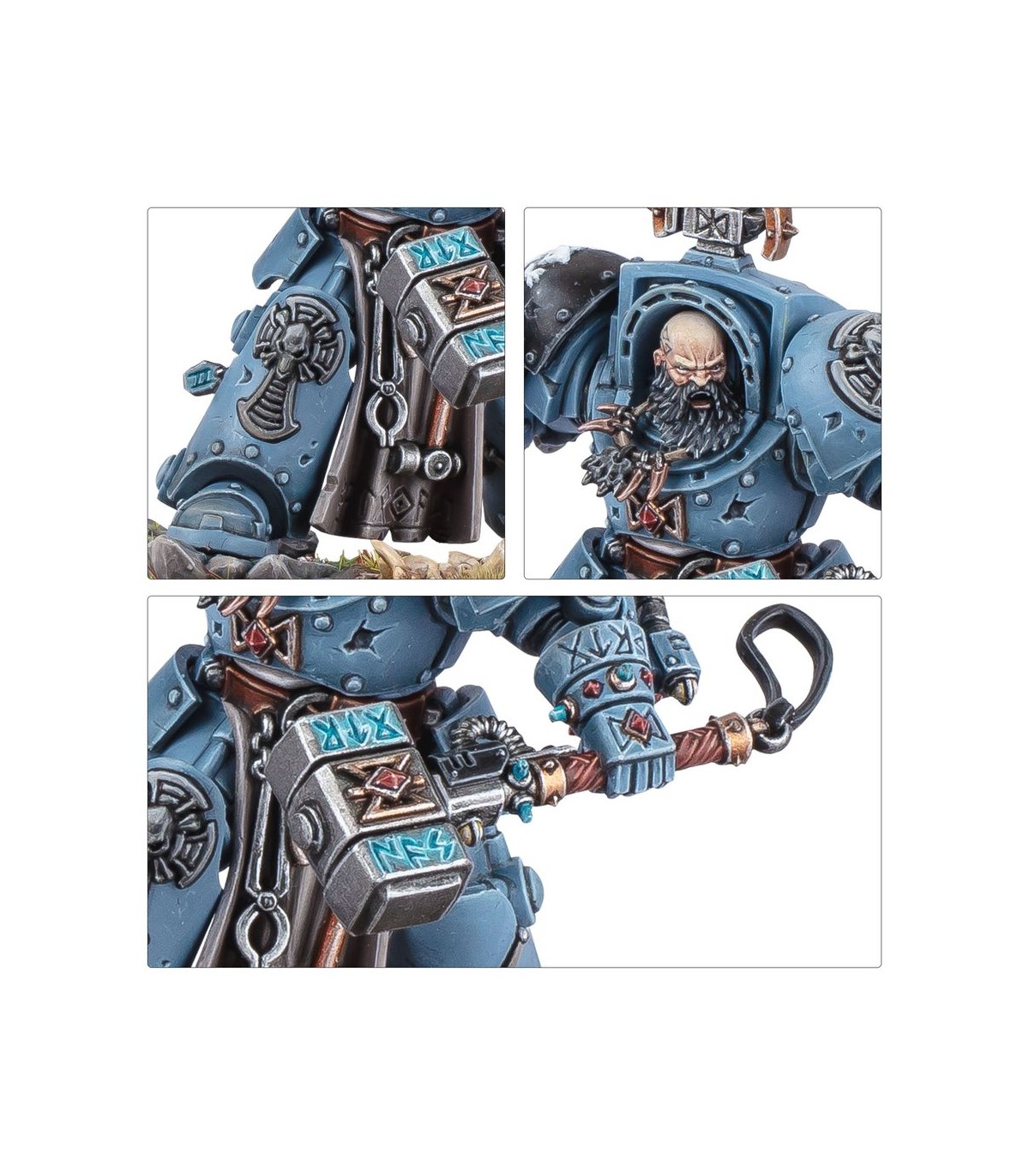 This multipart plastic kit builds Arjac Rockfist, a mighty champion for your Space Wolves armies in games of Warhammer 40,000. Clad in the finest Terminator armour, he is a towering figure – able to go toe-to-toe with the worst horrors of the galaxy and cause grievous damage with his legendary weapon, Foehammer. He can be assembled throwing his hammer forward or brandishing it, ready to strike in melee.